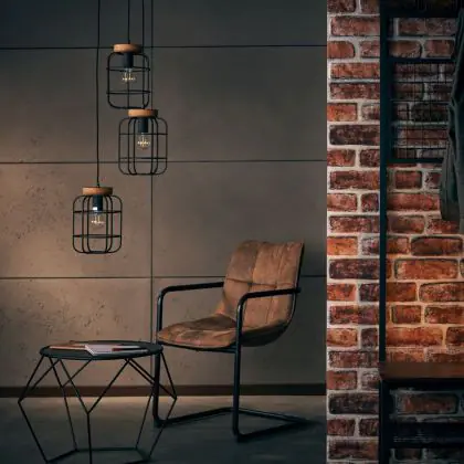 Brilliant Gwen Pendant Metal Wood Black | 420mm - Suitable for 3x E27