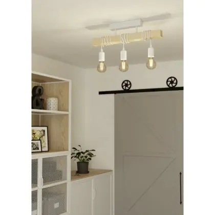 Eglo Ceiling Light Townshend Steel White Wood | IP20 - Suitable for 3x E27