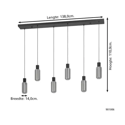 Eglo Pendant Maione Steel Black | IP20 - Suitable for 6x E27