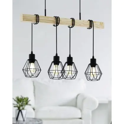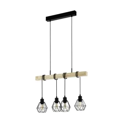 Eglo Pendant Townshend 5 Steel Wood Black | IP20 - Suitable for 4x E27