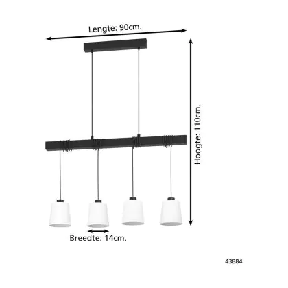 Eglo Pendant Townshend 8 Steel Wood Black | IP20 - Suitable for 4x E27