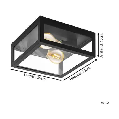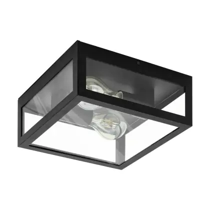 Eglo Wall and Ceiling Light Amezola Steel Black | IP44 - Suitable for 2x E27
