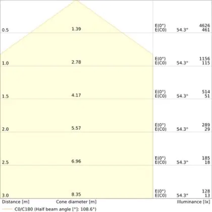 ![]() The colour code is a combination of colour rendering (CRI) and light colour (Kelvin). The first number indicates the colour rendering (1 = very poor colour rendering, 9 = maximum colour fastness). The second and third number contains the light colour. Example: the colour code 830 consists of good colour rendering (8) and warm white light (3000K). |