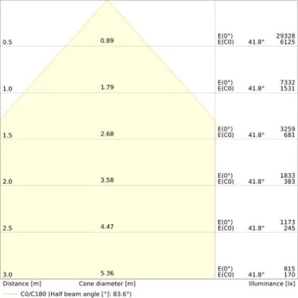 ![]() The colour code is a combination of colour rendering (CRI) and light colour (Kelvin). The first number indicates the colour rendering (1 = very poor colour rendering, 9 = maximum colour fastness). The second and third number contains the light colour. Example: the colour code 830 consists of good colour rendering (8) and warm white light (3000K). |