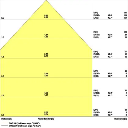 ![]() The colour code is a combination of colour rendering (CRI) and light colour (Kelvin). The first number indicates the colour rendering (1 = very poor colour rendering, 9 = maximum colour fastness). The second and third number contains the light colour. Example: the colour code 830 consists of good colour rendering (8) and warm white light (3000K). |