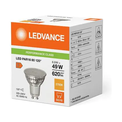 Multipack 10x Ledvance Performance LED Spot Reflector GU10 PAR16 6.9W 620lm 120D - 827 Extra Warm White | Replaces 80W