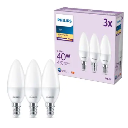 Multipack 3x Philips Bulb LED E14 Candle Frosted 5W 470lm - 827 Extra Warm White