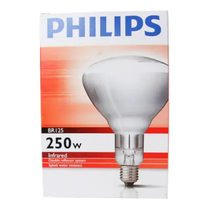 The Philips BR125 Industrial Heat IR 250w E27 230-250v Clear is an infrared incandescent reflector lamp specifically designed for industrial applications due to the reinforced hard glass construction. As a result of this robust and shatter-proof design, these lamps are also safe for use in agricultural and food preparation environments.