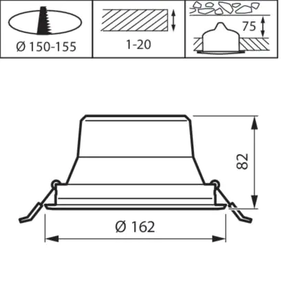 Cut out (mm) | 155 |